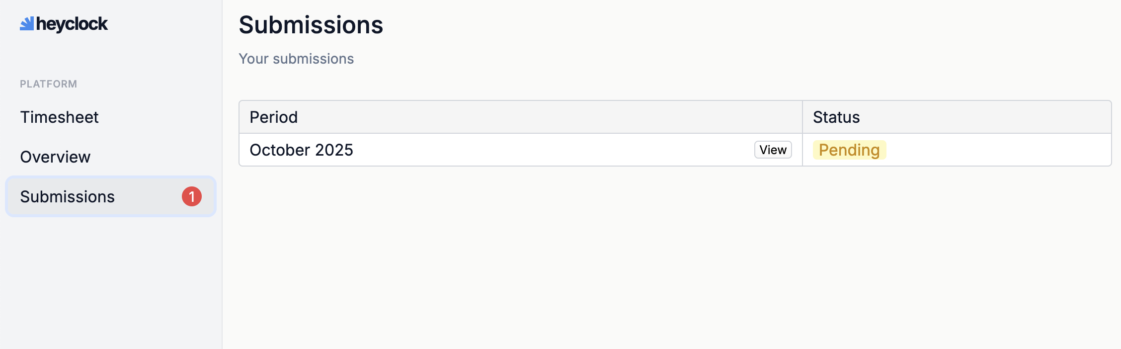 You will find your submissions prepared for you at the end of each month in the Submissions menu.